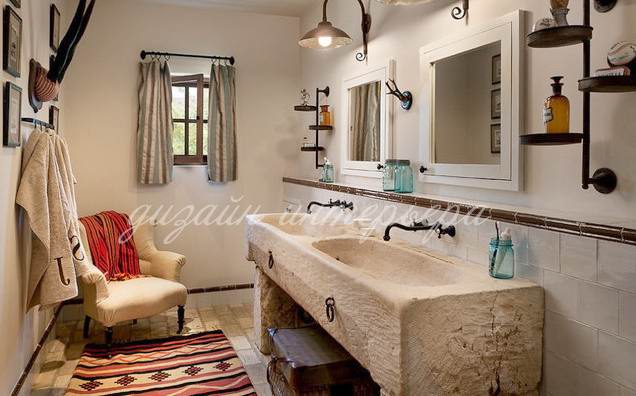 В оформлении ванной комнаты в восточном стиле должны быть использованы насыщенные, глубокие цвета, в сочетании с правильными и четкими геометрическими формами. Следует выбирать настенную керамику из мозаичной плитки с узорами. Напольное покрытие может быть как однотонным, так и оформлено в виде рисунков. Дополняйте интерьер зеркалами, и предметами, украшенными инкрустацией, фарфоровыми статуэтками, декором из цветного стекла. Интерьер в восточном стиле - это сочетание аксессуаров, декора, предметов мебели, задающих стилистику востока.